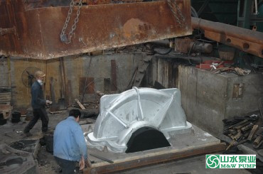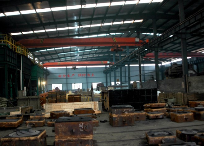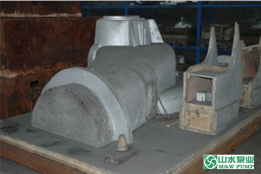 鑄造車間建筑面積約5200平方米, 最大起吊重量20噸, 有兩個5噸的沖天 爐,一個2噸的電弧爐,一個0.5噸的高頻爐,二條樹脂砂生產線等設備,可生產包括超低碳不銹鋼在內的各種泵用金屬鑄件,鑄鐵件年生產能力15000噸,鑄鋼 件年生產能力1500噸,采用的樹脂砂造型新工藝,與傳統粘土造型相比,鑄件表面粗糙度降低了兩個等級,鑄件的光潔度、尺寸的精確度都有很大的提高,鑄件內部材質狀況更加良好。