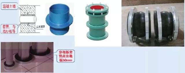 4 、消防水泵出水管道穿越外墻時(shí),應(yīng)采用防水套管;當(dāng)穿越墻體和樓板時(shí),應(yīng)加設(shè)套管,套管長(zhǎng)度≥墻體厚度,或應(yīng)高出樓面或地面50mm;套管與管道間隙應(yīng)采用不燃材料填塞,管道的接口不應(yīng)位于套管內(nèi);
